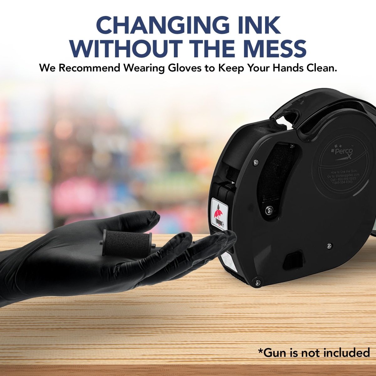 - Compatible with Perco price and date guns, adding thousands of crisp, clear 1-line imprints with each ink roll refill!
