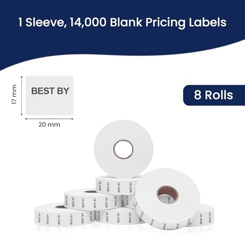 - EIGHT ROLLS WITH INK ROLL INCLUDED: You’ll get eight rolls of price labels – that’s enough to tag 14,000 items. Not only that, but you’ll also get a free standard ink roll.